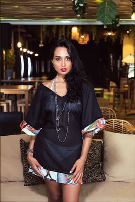 Créatrice de designs pour prêt-à-porter et accessoires, paréos, tuniques, sacs, serviettes de plage, foulards.